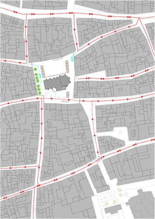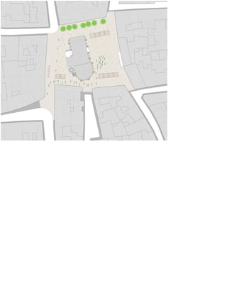 Este documento propone unificar las plazas de España y los Reyes mediante un nuevo diseño de pavimento. El plan eliminaría la circulación de vehículos excepto para accesos limitados, crearía más espacios peatonales e incluiría marquesinas, jardineras, fuentes y alumbrado para mejorar la zona.