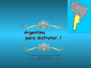 El documento lista lugares turísticos populares en varias provincias de Argentina, incluyendo destinos naturales como los glaciares en Santa Cruz, las cataratas del Iguazú en Misiones, y las áreas vinícolas en Mendoza y San Juan, así como ciudades históricas como Ushuaia, Salta, y Rosario.