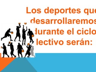 El documento presenta el plan de estudios de educación física para el ciclo lectivo. Se enseñarán los deportes de básquetbol, handball y voleibol, utilizando un método de enseñanza semi-dirigido y resolución de problemas. Se enfocará en la técnica, forma de juego y reglamento de cada deporte. La evaluación incluirá pruebas teóricas sobre los conocimientos deportivos y evaluaciones prácticas del progreso técnico de los estudiantes. Se enfatizarán aspectos actitudinal