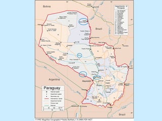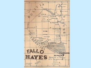 El documento detalla la evolución de los límites territoriales entre Argentina y Paraguay desde el tratado de 1811 hasta la firma del tratado definitivo de límites en 1939 y sus posteriores ratificaciones. Se menciona la influencia de conflictos bélicos, como la Guerra de la Triple Alianza, y la importancia de ríos como el Pilcomayo en las disputas limítrofes. También se abordan proyectos contemporáneos para gestionar el agua y resolver desacuerdos relacionados con el cauce del río.