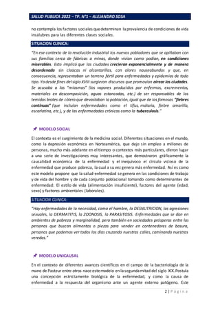 Este documento presenta una reflexión crítica sobre los diferentes modelos conceptuales que ha desarrollado el hombre a lo largo de la historia para entender los determinantes del proceso salud-enfermedad. Describe 10 modelos: mágico-religioso, sanitarista, social, unicausal, multicausal, epidemiológico, ecológico, histórico-social, geográfico, económico e interdisciplinario. Para cada modelo, incluye un breve resumen del contexto histórico y científico en el que surgió