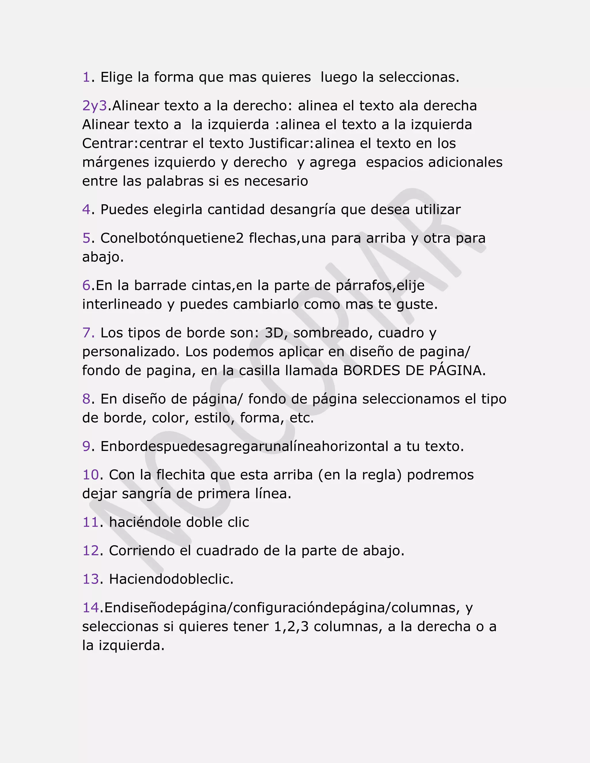 El documento proporciona instrucciones sobre cómo formatar texto en Microsoft Word, incluyendo alinear texto, agregar sangría, cambiar el interlineado, aplicar bordes de página, agregar columnas y modificar márgenes y orientación. Explica cómo seleccionar estas opciones de formato en la cinta de opciones y menús de diseño de página en Word.