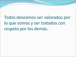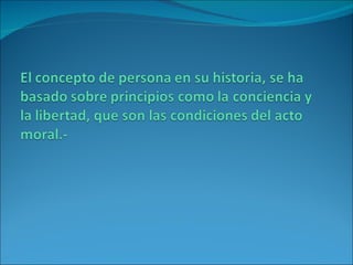 El documento describe la naturaleza humana y lo que significa ser una persona. Los humanos vivimos en sociedad y tenemos la capacidad de anticipar las consecuencias de nuestras acciones y tomar decisiones libremente, a diferencia de los animales. También tenemos la responsabilidad de respetar los derechos de los demás según las reglas de oro y plata, tratando a los otros como fines en sí mismos y no solo como medios.