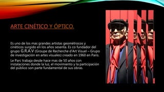 Julio Le Parc es uno de los principales artistas cinéticos y ópticos de los años 1960. A lo largo de más de 50 años, ha creado instalaciones interactivas que utilizan la luz y el movimiento para generar experiencias dinámicas e inestables para el espectador. Sus obras buscan fomentar una relación activa entre el público y la pieza artística.