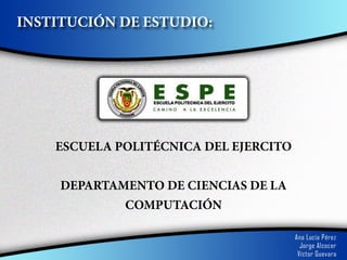 Este documento presenta el análisis estratégico de la Carrera de Ciencias de la Computación de la Escuela Politécnica del Ejército. Se evalúan los factores internos y externos, y se desarrolla una matriz FODA. Los resultados muestran que la carrera tiene fortalezas como proyectos de investigación que permiten cumplir su misión y visión. Aunque existen debilidades como la formación docente, las estrategias propuestas ayudarán a aprovechar oportunidades y enfrentar amenazas para convertirse