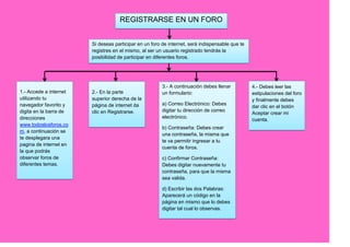 El documento habla sobre los foros en internet. En resumen:
