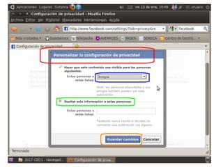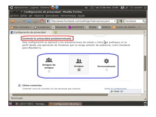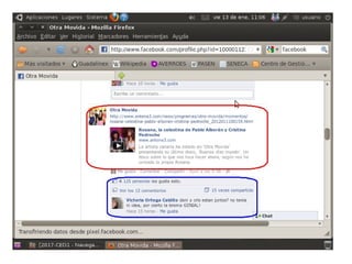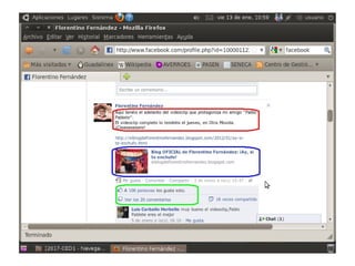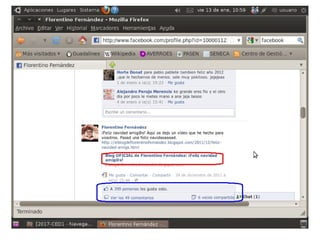 Este documento presenta Facebook y resume sus características principales. Explica que Facebook es una red social que permite a los usuarios conectarse con amigos y familiares, compartir fotos e información personal, y agregar a otros usuarios como amigos. También cubre temas como cómo acceder a Facebook, crear una cuenta, publicar contenido, etiquetar amigos, y las medidas de seguridad que los usuarios deben tomar.
