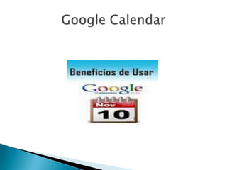 Web 2.0 se refiere a sitios web que facilitan la colaboración y el intercambio de información entre usuarios. Permite a los usuarios crear y modificar contenido en la web de forma colaborativa. Algunos ejemplos son redes sociales como Friendster que permiten compartir fotos y conectarse con amigos, Wikipedia que permite que cualquier persona edite y contribuya a su enciclopedia libre, y Google Calendar y Google Keep que facilitan la organización de eventos y tareas.
