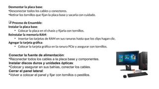 1. El procesode desensamble y ensamble de un computador de escritorio puede variar según el fabricante y
