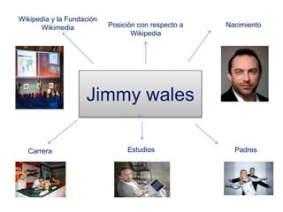 Jimmy Wales (nacido en 1966 en Alabama, Estados Unidos) es el cofundador y director ejecutivo de la Fundación Wikimedia. Estudió en varias universidades y trabajó como director de investigación antes de cofundar Wikipedia en 2001 junto a Larry Sanger. Wikipedia creció rápidamente y sobrepasó a Nupedia, su proyecto original. Aunque inicialmente estaba preocupado por el nuevo concepto de wiki, Wales ahora reconoce que alrededor del 0.7% de los wikipedistas realizan el 50% de las contribuciones y forma una comunidad restringida de 524 personas