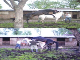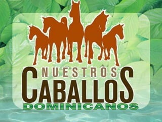 Este documento describe la historia, origen, crianza y uso del caballo en la República Dominicana. Explica que el caballo probablemente se originó en Norteamérica y emigró a otros continentes. Detalla los procesos de apareamiento, nacimiento, alimentación y cría de potros. También cubre las razas de caballos, su importancia histórica y usos actuales como transporte, deporte y compañía.