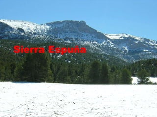 Sierra Espuña es una sierra situada en la Región de Murcia en España que fue declarada de interés cultural en 1931 y protegida como Parque Regional en 1992. Alberga alrededor de 1000 especies vegetales, predominando el pino carrasco excepto en las zonas más altas donde predomina el pino laricio y el pino rodeno. Su fauna incluye 8 especies de anfibios, 17 de reptiles, 123 de aves como el buitre leonado y 38 mamíferos como el ratón de campo. Entre los sitios de interés se encuentran