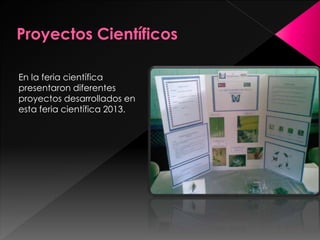 La feria científica presentó proyectos relacionados con la física, como un aerodeslizador hecho con un disco de música y una tapa de botella. También se mostraron proyectos de química y cómo hacer papel reciclado. Los estudiantes realizaron experimentos como mostrar que el agua salada es más densa que el agua dulce usando un huevo, y medir cómo la congelación afecta la velocidad de quema de una vela.