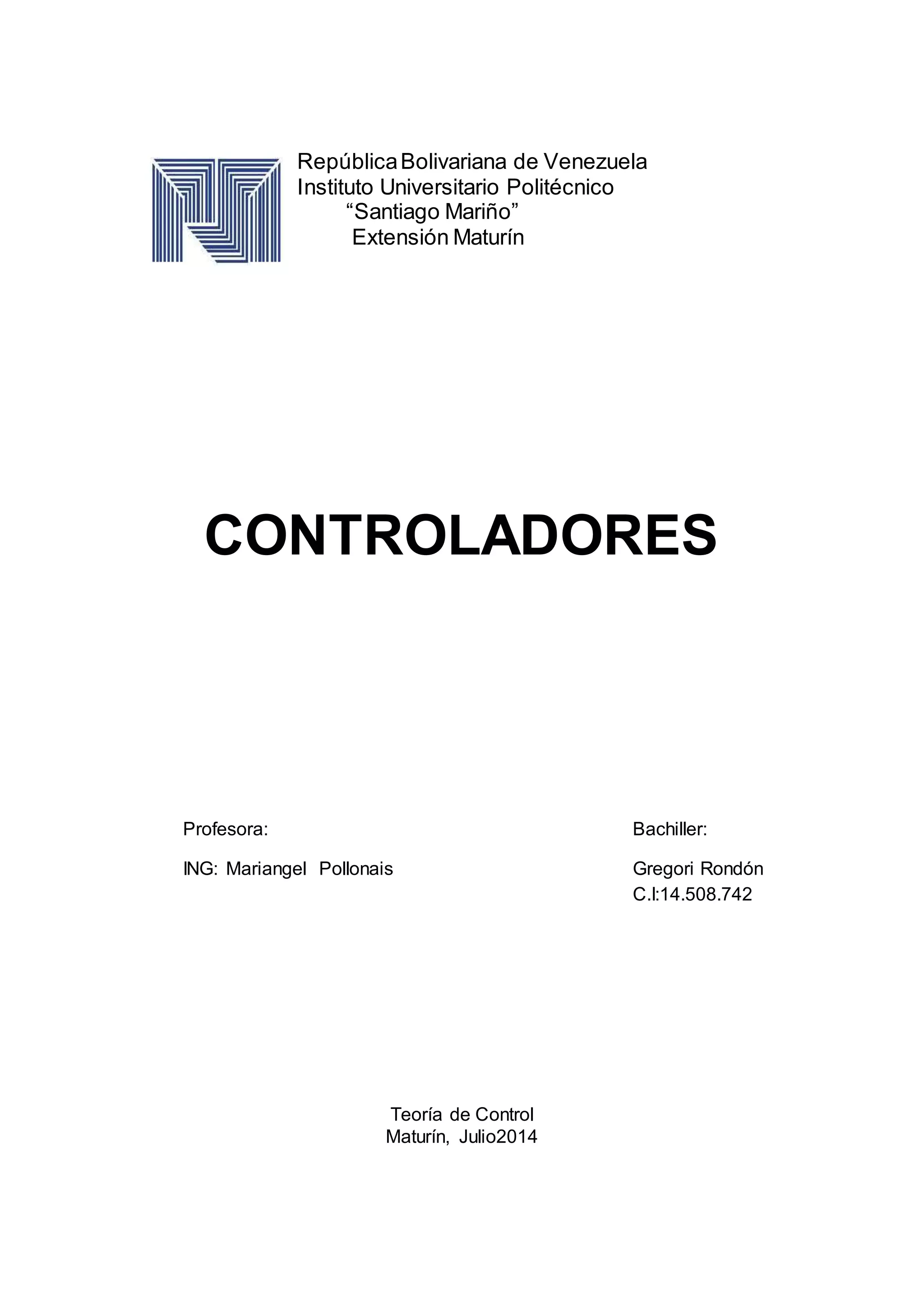 Este documento describe los diferentes tipos de controladores y sus acciones de control. Explica que un controlador compara el valor medido con el valor deseado y calcula un error para actuar y corregirlo. Luego describe los tipos principales de controladores: de dos posiciones, proporcional, integral, proporcional-integral, proporcional-derivativo y proporcional-integral-derivativo. Finalmente, concluye que los controladores son eficientes para ejecutar procesos ya que tienen una gran variedad de aplicaciones industriales y domésticas.