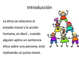 Este documento describe las relaciones entre la ética y otras disciplinas como la psicología, sociología, antropología, derecho y economía. También define normas morales, jurídicas, sociales y deontológicas. Explica la importancia de los códigos de ética, especialmente para los psicólogos. Concluye que la práctica de la ética por todos es necesaria para lograr el mayor bienestar común en la sociedad.