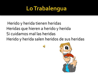 El poema habla sobre heridas que hieren a personas heridas. Advierte que si no cuidamos bien las heridas, las personas heridas saldrán más heridas de sus heridas originales.