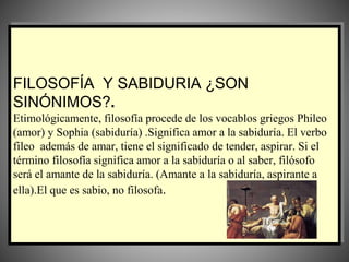 La filosofía busca la sabiduría a través del amor al conocimiento. No es sinónimo de sabiduría, pero ambas persiguen el mismo fin. Tampoco es una ciencia, a diferencia de esta que estudia fenómenos medibles, la filosofía se interesa en comprender la totalidad del mundo y el ser. Funciona ayudando a clarificar perspectivas, vivir con libertad y proponer modelos éticos para la humanidad. Es importante para no filósofos porque les da herramientas para pensar y encontrar respuestas por sí mism
