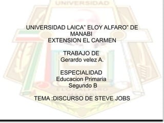 Steve Jobs tuvo una infancia difícil ya que fue dado en adopción. A pesar de no tener una educación universitaria, ingresó a Stanford pero no sabía qué carrera estudiar. Trabajó duro y fundó Apple con su amigo en un garaje. Años después fue despedido de su propia empresa pero no se rindió y fundó Next e hizo la primera película animada por computadora con Pixar. Recientemente superó un cáncer incurable gracias a una cirugía.