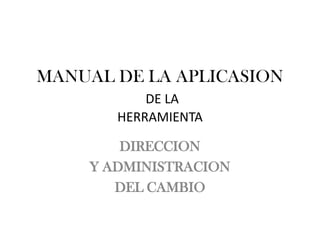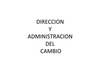 Este documento presenta conceptos clave sobre el cambio organizacional. Explica que el cambio comienza a nivel emocional e individual, requiere involucramiento y participación del equipo, y una visión compartida que una al propósito con la dirección deseada. También destaca que el cambio es irreversible e irrepetible, y que una comunidad que progresa es aquella donde todos contribuyen desde sus posiciones y entienden que su propio progreso es indispensable para el de los demás.