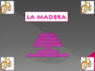 La madera es un material ortotrópico proveniente de los troncos de los árboles, utilizado en diversas aplicaciones como la fabricación de papel y en la construcción. Existen diferentes tipos de madera, clasificados por su uso y origen, que varían en características y precios. La evolución de la madera también se ha visto afectada por factores ambientales, como la erupción del Pinatubo, que impactó la concentración de CO2 en la atmósfera.