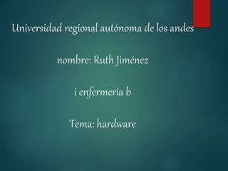 Este documento describe los componentes principales del hardware de un sistema computacional. Explica que el hardware incluye el ordenador central y sus periféricos. Luego detalla los componentes del ordenador como la placa base, procesador y memoria RAM. Además, enumera diferentes tipos de periféricos de entrada, salida y entrada/salida como teclados, monitores, discos duros y elementos de red como routers y switches.