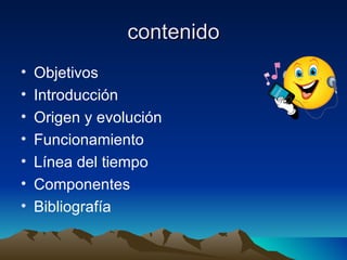 El documento describe el origen y evolución del iPod de Apple. Comenzó en 2001 con el primer iPod, que tenía una gran capacidad y batería de larga duración. Desde entonces, Apple ha lanzado nuevas generaciones con mejoras como pantallas a color, capacidad de video y aplicaciones. El iPod se ha convertido en uno de los productos digitales más innovadores con millones de usuarios en todo el mundo.