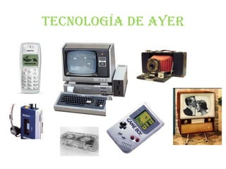 El documento compara la tecnología del pasado, presente y futuro. La tecnología del pasado era básica y difícil de obtener, mientras que la tecnología actual es más avanzada y facilita la vida de las personas. La tecnología del futuro probablemente reemplace muchas funciones humanas en el trabajo y cause un gran desempleo en el mundo. Algunas ventajas de la tecnología son la facilidad de uso y el mejor funcionamiento, pero algunas desventajas son la pérdida de empleos humanos y un mundo más artificial.