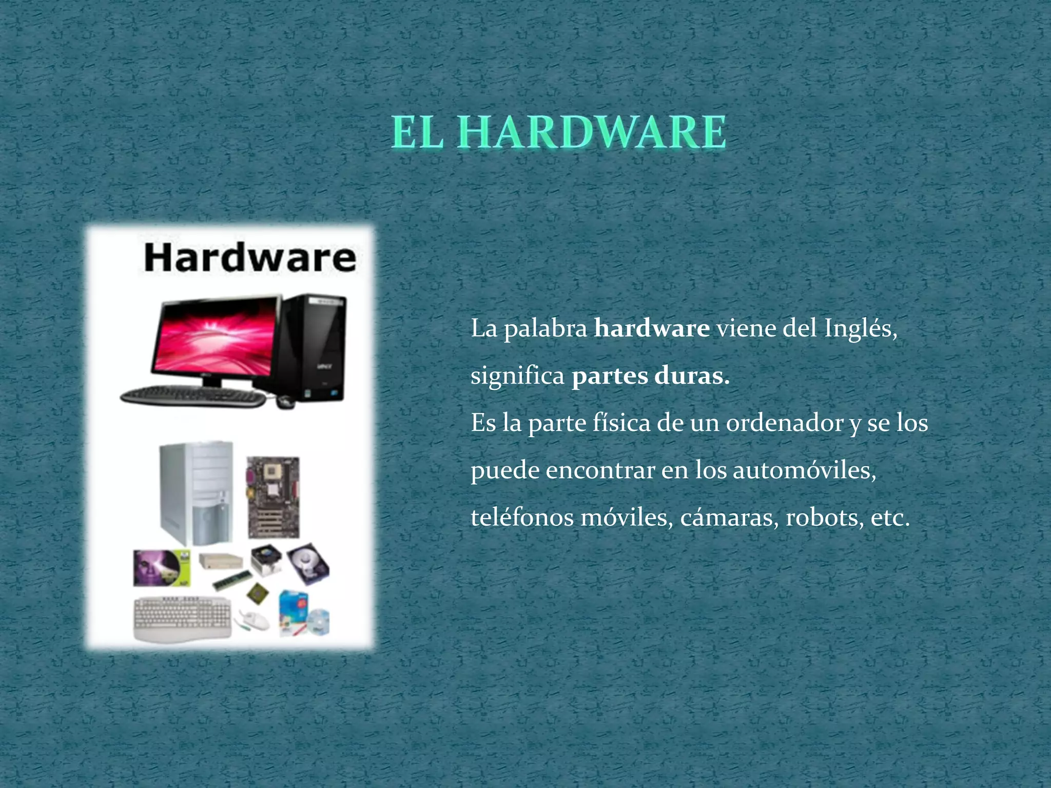 El documento define hardware como las partes físicas de un ordenador u otros dispositivos electrónicos, e introduce software como los programas y datos que permiten realizar tareas en un sistema informático. A continuación, enumera tres tipos principales de software: software de aplicación como procesadores de texto y hojas de cálculo, software de programación como compiladores y editores, y software de sistema como Windows y Linux.