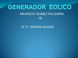 Este documento presenta el plan de trabajo para un proyecto de investigación sobre la creación de un ventilador eólico. Incluye secciones como la justificación, objetivos, marco teórico, metodología, y presupuesto. El estudiante busca demostrar el potencial de las energías renovables y aprovechar la fuerza del viento de manera eficiente y no contaminante.