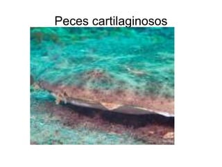 Este documento clasifica las principales especies marinas encontradas en las costas canarias en grupos como peces cartilaginosos, peces óseos y moluscos. Proporciona algunas características clave de cada grupo, como que los peces cartilaginosos son principalmente carnívoros y carecen de vejiga natatoria, mientras que los moluscos son invertebrados blandos protegidos a veces por conchas. El objetivo es compilar un catálogo completo de las especies marinas más comunes de la región.