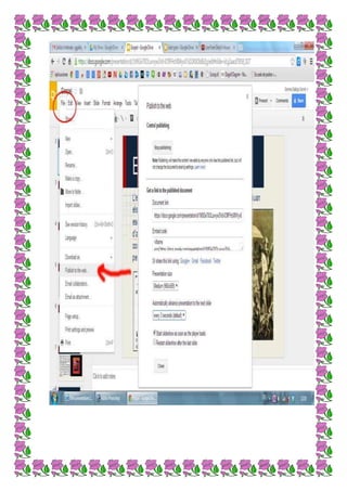 Este documento proporciona instrucciones para utilizar varias herramientas de Google Drive y Gmail, incluyendo cómo crear documentos, hojas de cálculo y presentaciones en Google Docs, subir archivos a Google Drive, crear encuestas y blogs. Explica los pasos para cada una de estas tareas con detalles sobre las opciones y funciones disponibles.