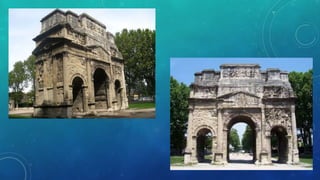 Orange era una colonia romana llamada Arausio fundada en el siglo I a.C. en la Galia. Aún se conservan importantes legados romanos como el teatro del siglo I d.C. que podía albergar a 9,000 espectadores, y el Arco de Triunfo erigido en honor a César Augusto. La ciudad también albergaba villas con suelos decorados con mosaicos.