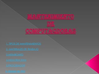 Este documento describe la historia y evolución de la memoria RAM. Comenzó con memoria de núcleo magnético en los años 40-50, luego se desarrollaron las primeras RAM basadas en semiconductores en los años 60-70, como la memoria DRAM. En los años 70 se estandarizó el direccionamiento multiplexado en tiempo de las direcciones de memoria, permitiendo una mayor miniaturización. Finalmente se crearon los primeros módulos de memoria para permitir una mayor escalabilidad y facilidad de actualización.