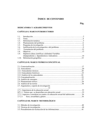 El planteamiento del problema identifica varios desafíos relacionados con la educación sexual que enfrentan los adolescentes de 14 a 17 años en el Liceo Raúl Matos, como embarazos no deseados, enfermedades de transmisión sexual, infección por VIH, abortos, depresión, abandono de criaturas y problemas de identidad sexual. Se señala que la falta de orientación sexual y escasa comunicación con los padres son las principales causas de estos problemas. El problema central parece ser la necesidad de mejorar la educación sexual que reciben los adolescentes para que puedan enfrentar
