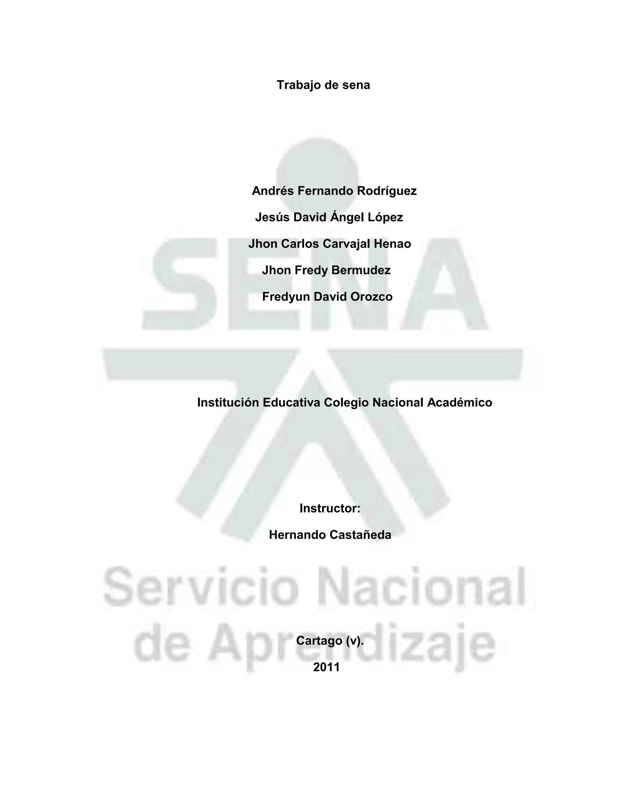Este documento contiene información sobre dispositivos de red. Presenta una lista de 5 nombres de estudiantes y su instructor. Luego incluye una tabla de contenido con secciones sobre conceptos de redes, dispositivos de red, protocolos de red, redes LAN, WAN, VPN y más. El propósito es ayudar a los estudiantes de décimo grado a aprender sobre mantenimiento de computadoras e informática.