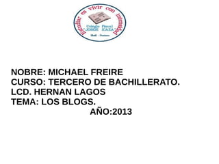 Este documento habla sobre los blogs. Define un blog como un sitio web donde uno o más autores publican artículos de forma cronológica y donde los lectores pueden comentar. Describe las características de los blogs como su actualización periódica y su enfoque personal. Además, clasifica diferentes tipos de blogs y discute su utilidad educativa y personal. Finalmente, menciona algunos proveedores populares de blogs como Blogger, Flogger y WordPress.