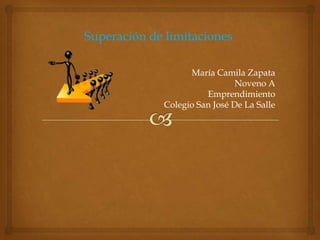 El documento habla sobre la superación de limitaciones a través del testimonio de vida de Tony Meléndez, quien logró cumplir sus metas a pesar de no tener brazos. También discute por qué algunas personas famosas terminan consumidas por las drogas debido al estrés. Finalmente, propone un proyecto para ayudar a familias de barrios populares y cómo enfrentaría posibles limitaciones.