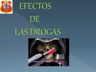 El documento describe los diferentes tipos de drogas, sus formas de consumo y sus efectos. Cubre drogas como la marihuana, metanfetaminas, cocaína, heroína, alcohol y alucinógenos. Explica que el consumo excesivo de drogas o su adulteración con sustancias tóxicas puede causar daños a la salud e incluso la muerte. También menciona que el VIH/SIDA es un riesgo para los usuarios de drogas inyectables.