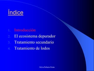Este documento describe los procesos biológicos utilizados para tratar aguas residuales. Explica que las bacterias y otros microorganismos desempeñan un papel clave en la degradación de la materia orgánica contaminante. Describe el ecosistema depurador y los principales métodos de tratamiento secundario como los lechos bacterianos y los fangos activos. Explica que en estos procesos, las bacterias forman flóculos que ayudan a eliminar la contaminación del agua residual.