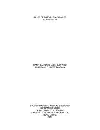 Este documento describe cómo crear y utilizar una base de datos en Microsoft Access 2010 para una microempresa llamada L&L. Explica cómo crear tablas, formularios e informes y establecer relaciones entre las tablas para almacenar y organizar información sobre clientes, empleados, productos e inventario.