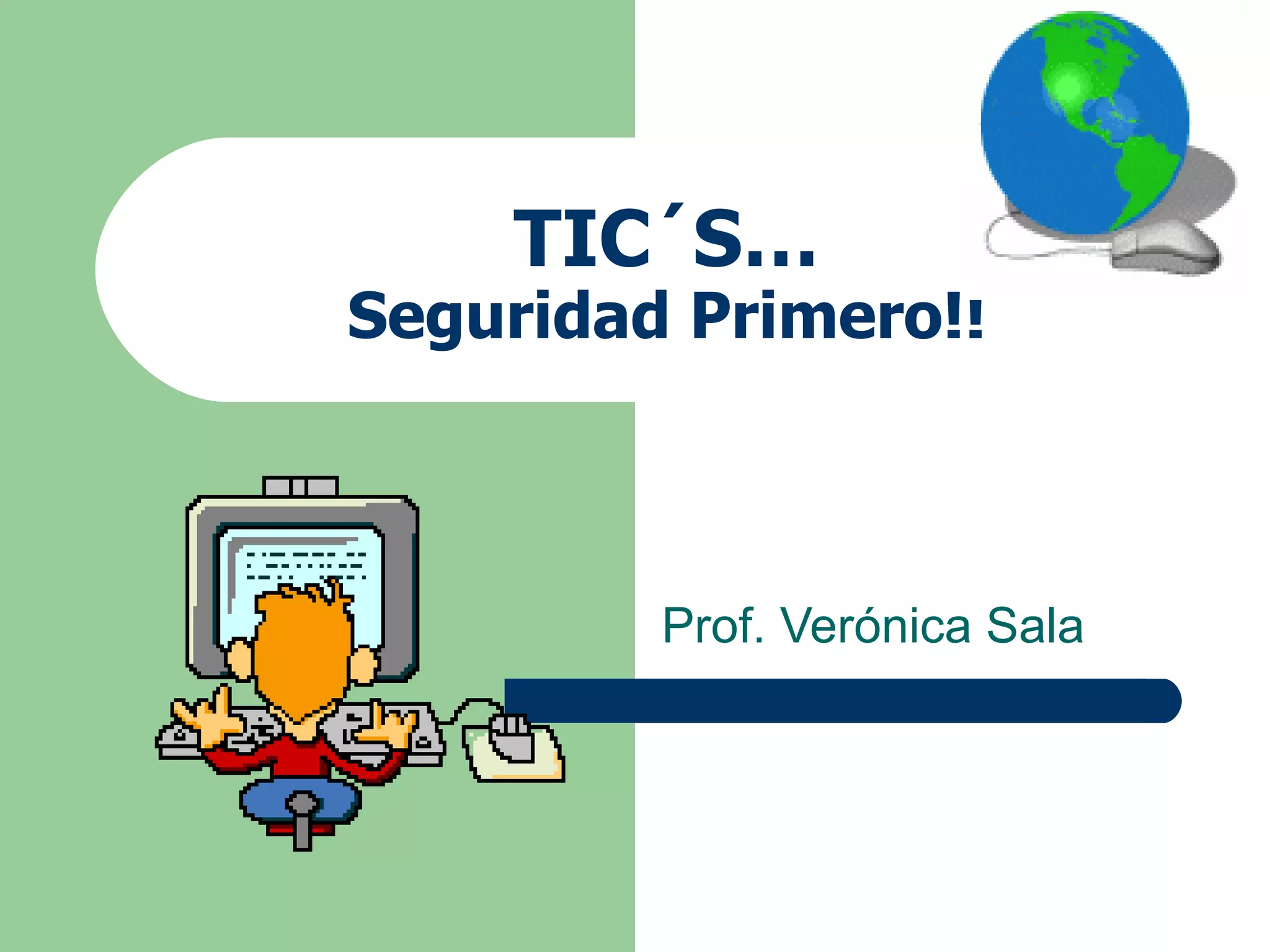 Este documento habla sobre la seguridad en Internet y las Tecnologías de la Información y la Comunicación (TIC). Explica los usos positivos de Internet pero también los riesgos como la exposición a la violencia, el abuso de la privacidad y la difusión de imágenes indebidas. Recomienda que los padres y docentes hablen con los niños sobre el uso seguro de Internet y evitar dar información personal a desconocidos.