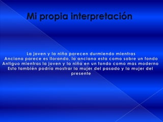La pintura "Las tres edades de la mujer" de Gustav Klimt muestra a tres mujeres de diferentes edades - una anciana, una joven y una niña - ante un campo de flores amarillas. Fue exhibida por primera vez en 1908 en Viena y actualmente se conserva en la Galería Nacional de Arte Moderno de Roma. Klimt pintó la obra en 1905 empleando su estilo personal muy ornamentado.