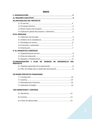 Este documento presenta un plan de negocios para implementar un servicio de entrega a domicilio ("delivery service") para las tiendas OXXO en San Andrés Cholula, Puebla. El servicio operaría con dos camionetas repartiendo productos básicos a estudiantes universitarios en un radio de 15 a 20 minutos. El proyecto financiaría las camionetas a través de un arrendamiento con Volkswagen para evitar una descapitalización inicial y mejorar la liquidez.