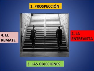 El documento presenta las técnicas básicas de ventas, incluyendo la prospección de clientes potenciales, la entrevista para identificar problemas y presentar soluciones, manejar objeciones comunes, y cerrar la venta. La prospección involucra identificar el mercado objetivo y contactarlos. La entrevista se enfoca en escuchar al cliente, hacer preguntas para comprender sus necesidades, y presentar cómo los productos o servicios pueden ayudar. Es importante anticipar y responder a las objeciones sobre precio, calidad u otros factores.