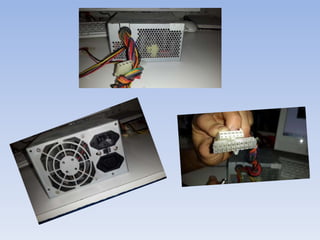 El documento describe las características de dos fuentes de poder. La Fuente 1 es una Switching Power Supply ATX-450W P4 con capacidad de 450W, voltaje de salida de 220V-110V, frecuencia de 50Hz-60Hz y 20A con 6 pines. La Fuente 2 es una Lanus ATX-300x con capacidad de 300W, voltaje de salida de 115V-230V, frecuencia de 50Hz-60Hz y 20A con 4 pines.