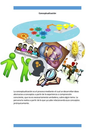 Este documento presenta información sobre un curso de nivelación de la Unidad de Gestión de Tecnologías en la Universidad de las Fuerzas Armadas Extension Latacunga. El curso es dirigido por Doris Alejandra Tapia Terán y el grupo número 01 está compuesto por José Andrés Lema Imba, Bryan Jimy Arias Salazar, Steven Rolando Cañizares Alvarado y Carlos Andrés Mera Quishpe. Además, ofrece definiciones sobre la conceptualización como el proceso de desarrollar ideas abstractas a partir de la experiencia,