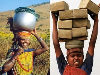 El documento trata sobre el trabajo infantil y cómo roba la infancia de los niños. Más de 180 millones de niños en el mundo son víctimas de explotación laboral, lo que pone en peligro su salud, seguridad y educación, así como su desarrollo físico y mental. El trabajo infantil les impide disfrutar plenamente de su infancia y derecho a la educación, causándoles daños que pueden persistir de por vida. El 12 de junio se conmemora el Día Mundial contra el Trabajo Infantil para promover