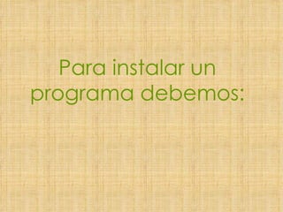 Para instalar un programa, se graba en el disco duro usando un instalador que indica la carpeta y nombre, y para ejecutarlo se usa el menú Ejecutar o Programas. Para desinstalar, se usa Agregar o quitar programas de Windows o el desinstalador incluido con el programa.