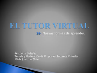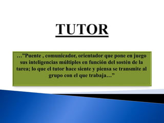 El documento describe las funciones y habilidades clave de un tutor virtual, incluyendo moderar foros de discusión, fomentar la participación e interacción entre estudiantes, y guiar el aprendizaje colaborativo mediante el uso de herramientas virtuales. También destaca la importancia de construir una comunidad de aprendizaje en línea mediante el establecimiento de vínculos entre estudiantes.