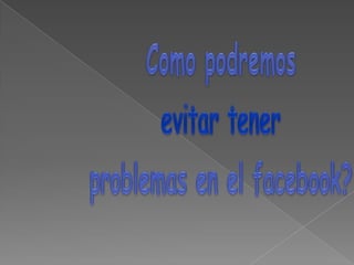 Facebook puede exponer a los usuarios a varios peligros como la pérdida de privacidad, estafas, cuentas hackeadas y contacto con desconocidos de manera anónima. Un caso descrito es el de una joven colombiana que fue contactada por desconocidos a través de Facebook, los cuales obtuvieron su información personal, la atrajeron a su apartamento y la asesinaron. El documento recomienda no aceptar solicitudes de personas desconocidas en Facebook y evitar publicar detalles personales que puedan ser usados en uno